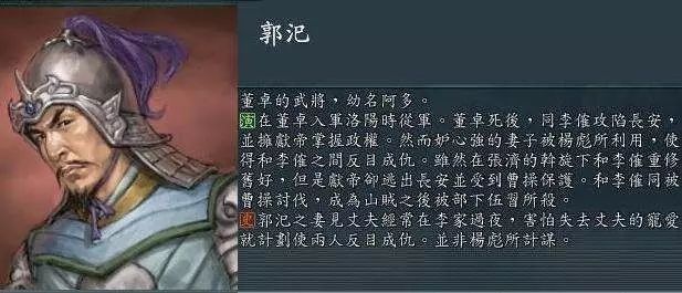董卓和牛辅这一对翁婿先后被杀之后,凉州兵团孤注一掷反攻长安,李傕和郭汜活捉了献帝刘协,但凡有点政治头脑,这可是千载难逢的挟天子那什么的好机会,是可以做一番大事业的,结果生生被郭汜的老婆郭太太给搅和了。